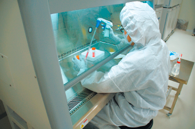 CPCでは高度なクリーンルームを備え、厳格な衛生管理のもとで、専門的な知識と技術を持ったスタッフが、細胞の加工・培養を行います。