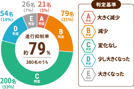 6種複合免疫療法を1クール(6回)治療を受けた方で、がんの進行が抑制できた方の割合は79%でした。(調査人数:380名 調査期間:2020年06月~2024年07月)