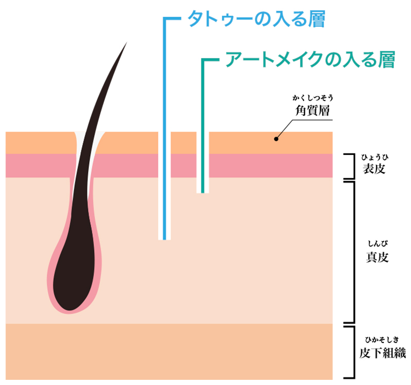 アートメイクは皮膚のごく浅い層に色素を入れていきます。